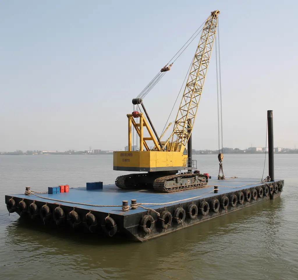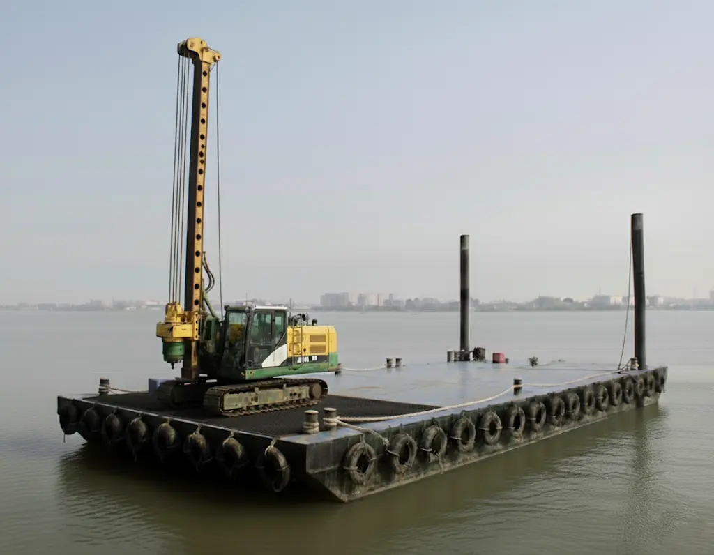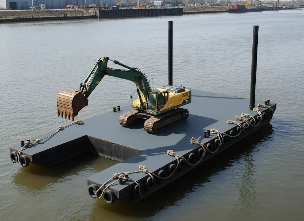 Acquaworks is a modular heavy-duty pontoon system that transforms water into a reliable worksite for cranes, excavators, dredging, and piling. Designed to handle real machine loads and dynamic forces, it offers safe, stable, and predictable performance. Its reinforced interlocking deck, spud wells/winch anchors, and integrated routes for utilities ensure stability, efficiency, and tidy operations. With non-slip decks, guardrails, and safe crew access, safety is built in. Easy to transport, assemble, and reconfigure for any project.