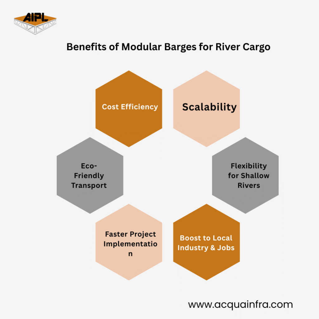 Eco-Friendly Transport Modular barges reduce greenhouse gas emissions compared to trucks. Shifting bulk and heavy cargo to rivers helps India move closer to its sustainability goals while reducing urban air pollution.